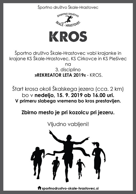 Zbirno mesto je pod kozolcem pri nogometnem igrišču. Start krosa je ob 16.00 uri.